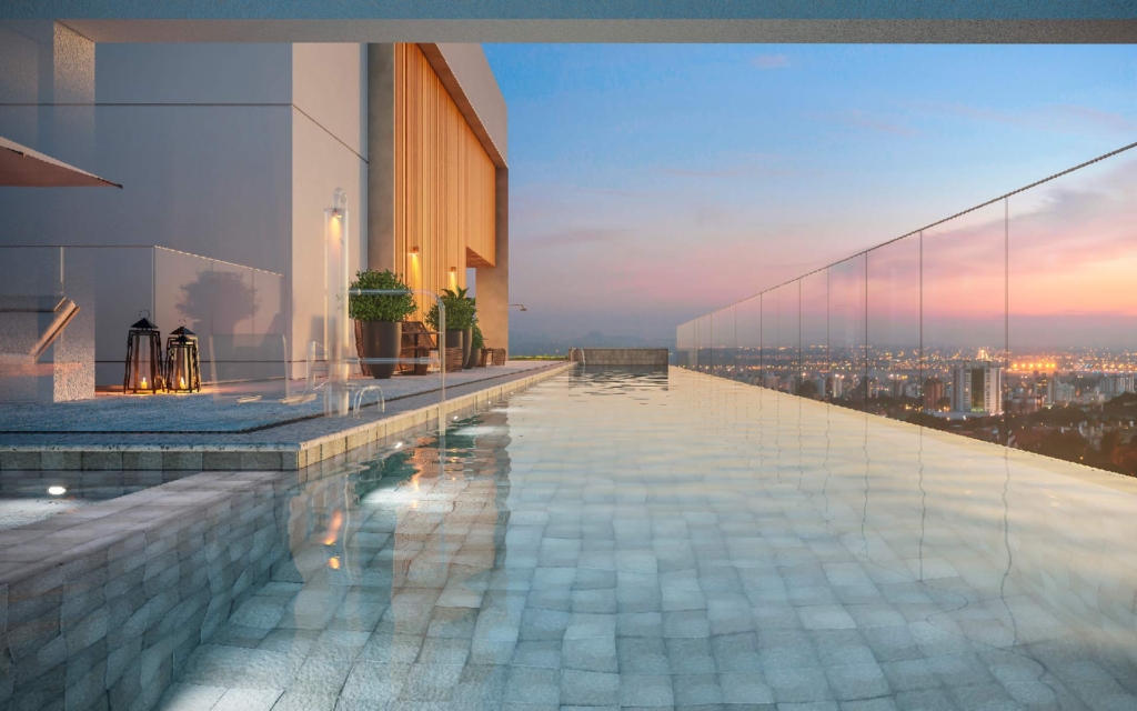 A proposta do empreendimento é ser um ícone urbano — um endereço que comunica estilo de vida para quem mora e para quem visita. A piscina no rooftop com vista para o bairro mais nobre de São Paulo materializa essa promessa.