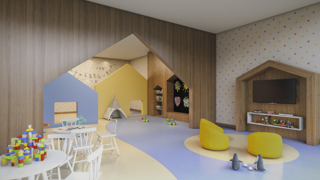 Lazer variado com quadras esportivas, quadras de tênis, academia, salão de festas, Churrasqueira, playground e amplas áreas verdes.
