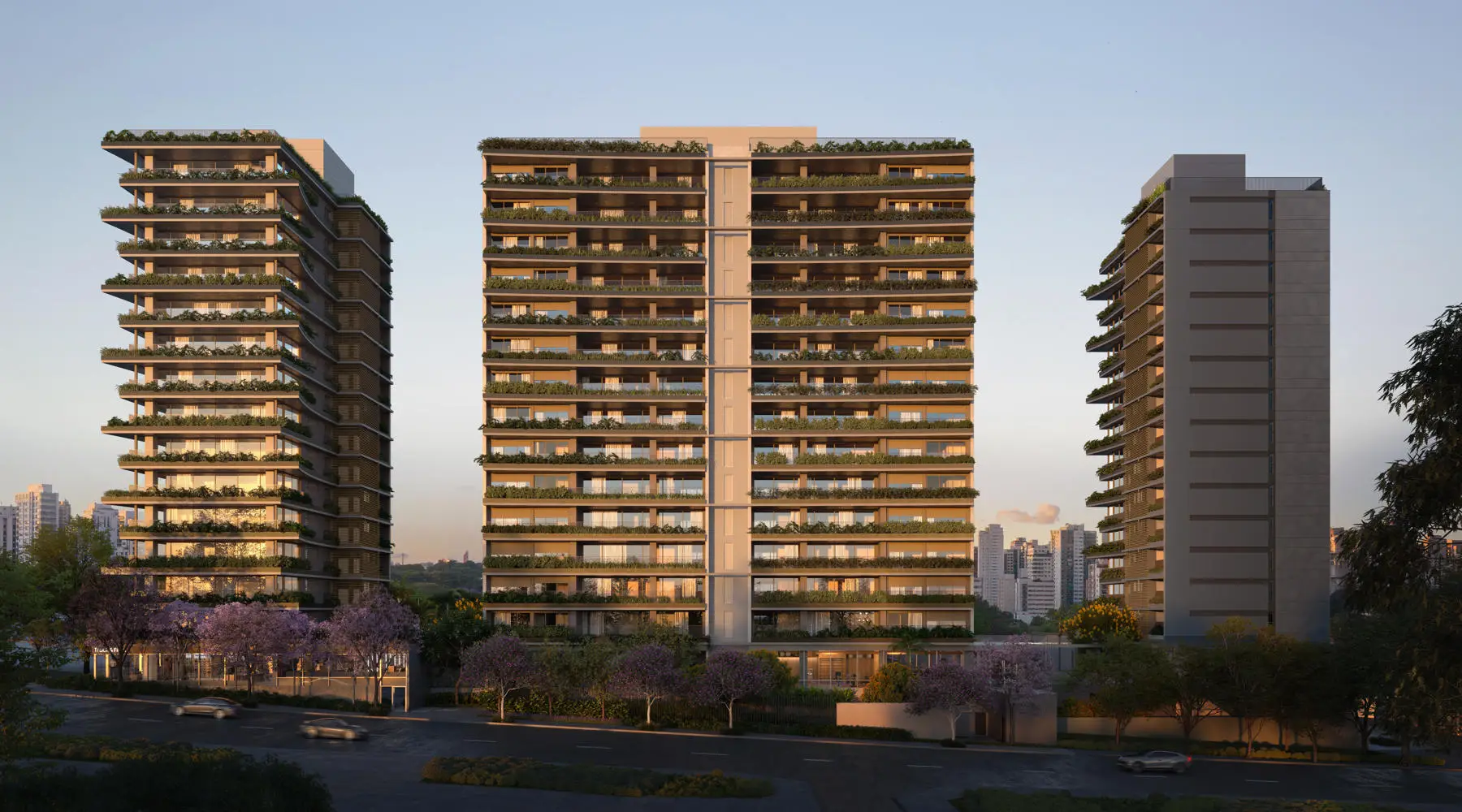 O maior terreno do Jardin com 5.414m² com apenas 56 apartamentos distribuídos em 3 torres de 14 pavimentos.