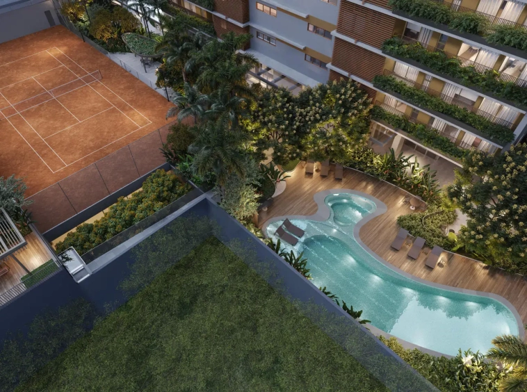 Está incluso 15 m² de Private Space em todos os apartamentos.