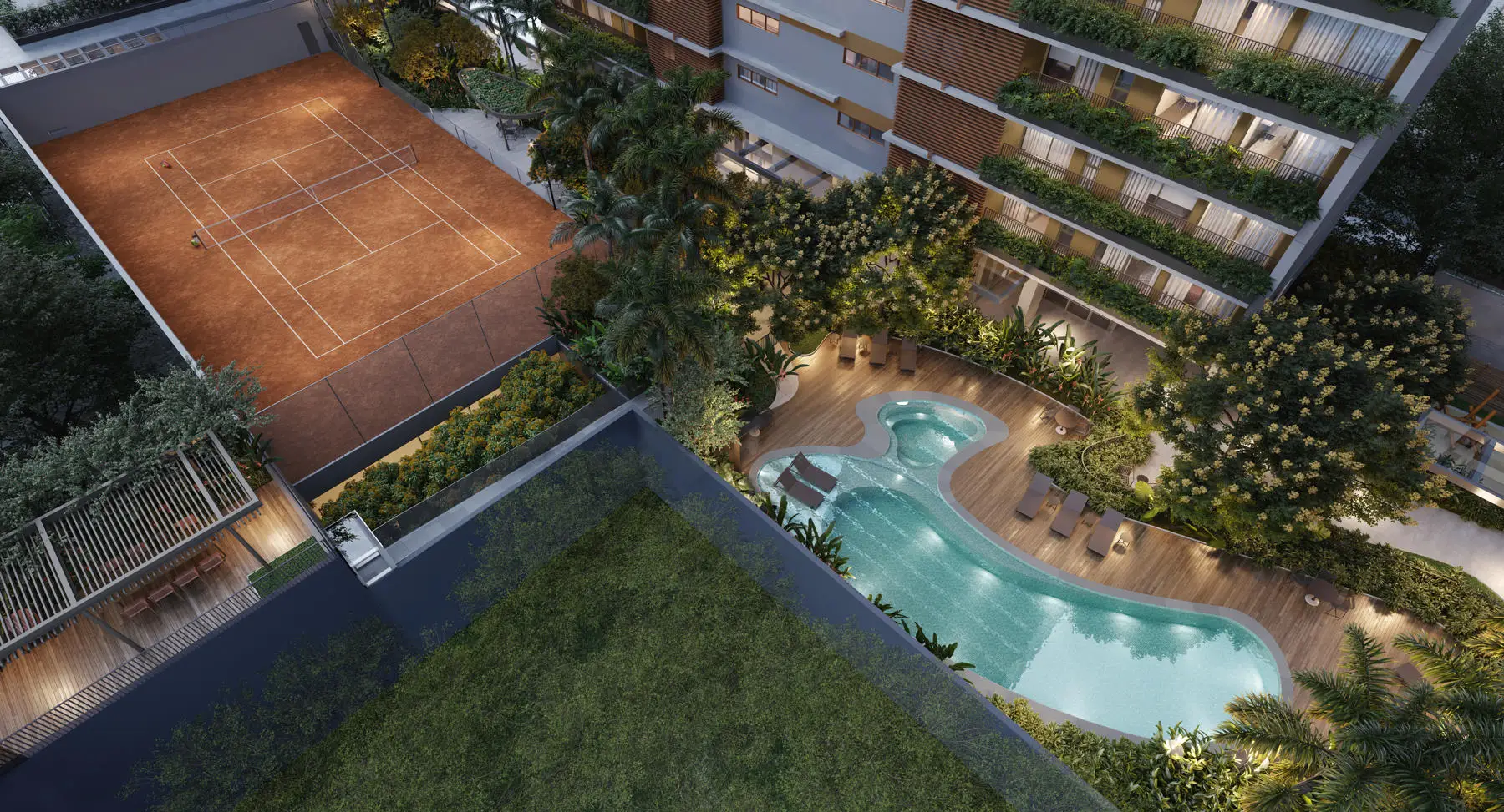 • 2.100 m² de áreas descobertas e verdes. Raridade em um bairro denso de prédios.