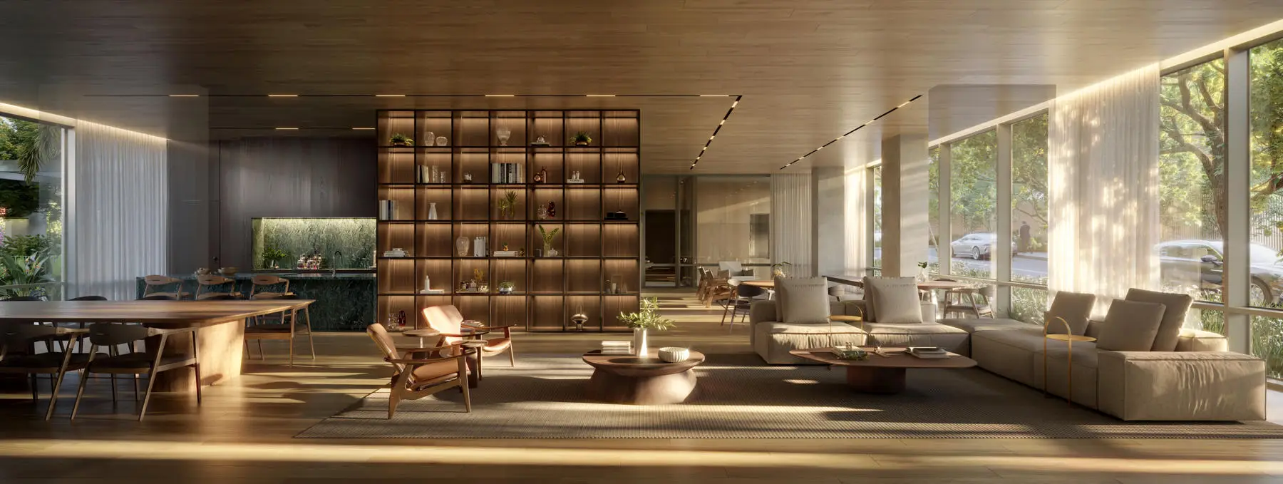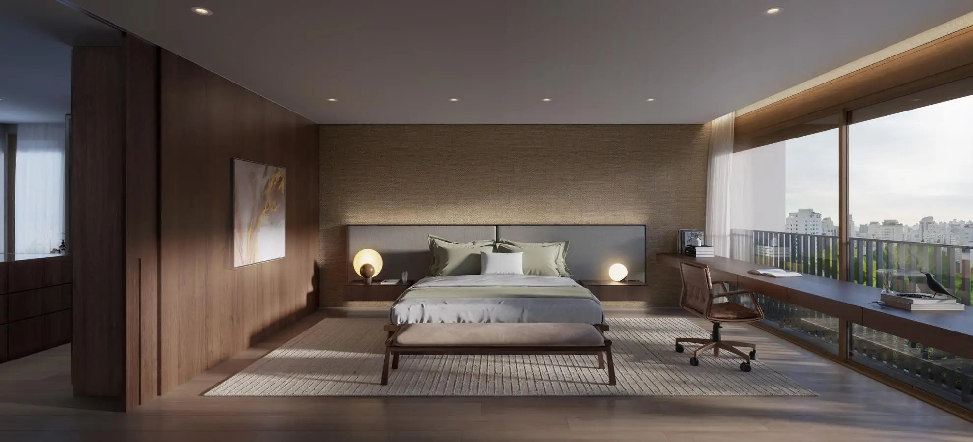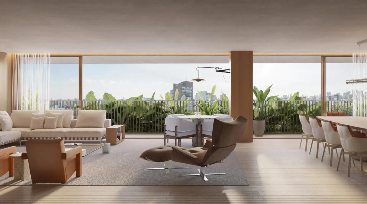 387 m² de privativa total que inclui 15 m² de private office externo ao apartamento.