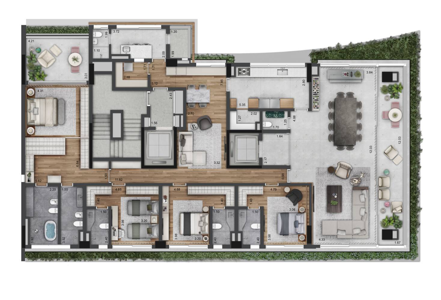 Coberturas – de 546 m² e 713 m² – 4 suítes