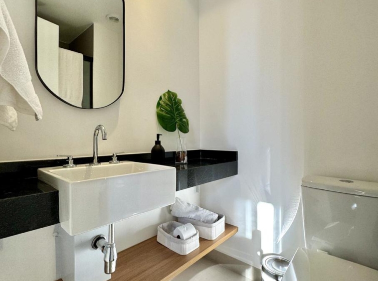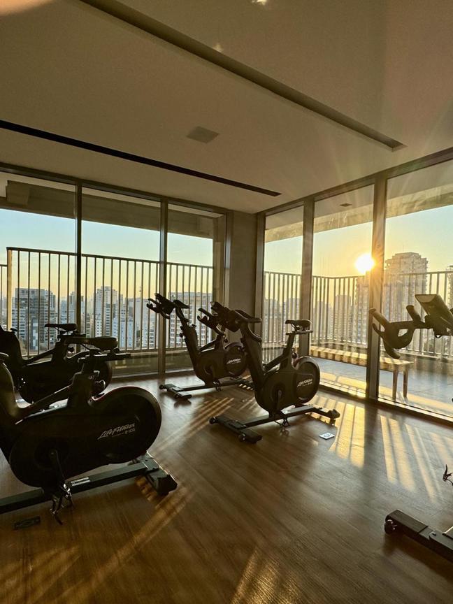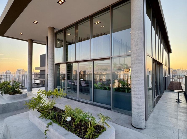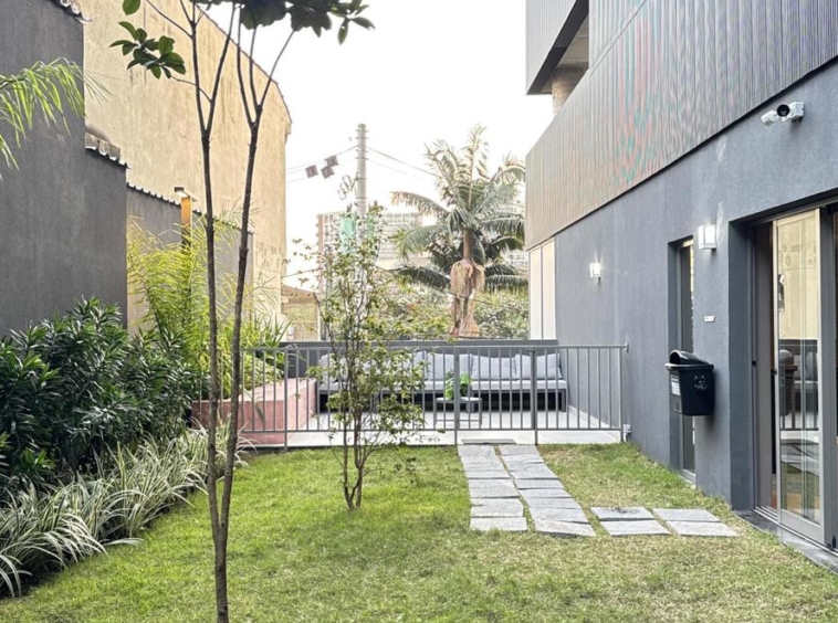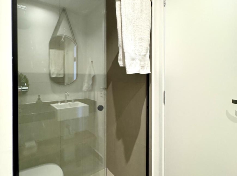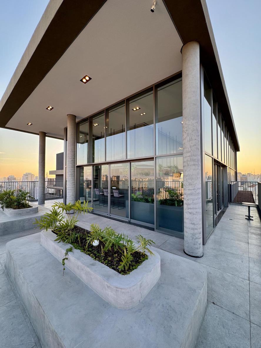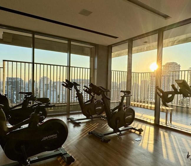 Prédio Vitacon com áreas comuns pensadas para locação. Com banheiro para uso do hóspede que chega antes do checkin, maleiro, lavanderia coletiva, coworking equipado, minimercado, academia, petplace com banho e cozinha compartilhada.