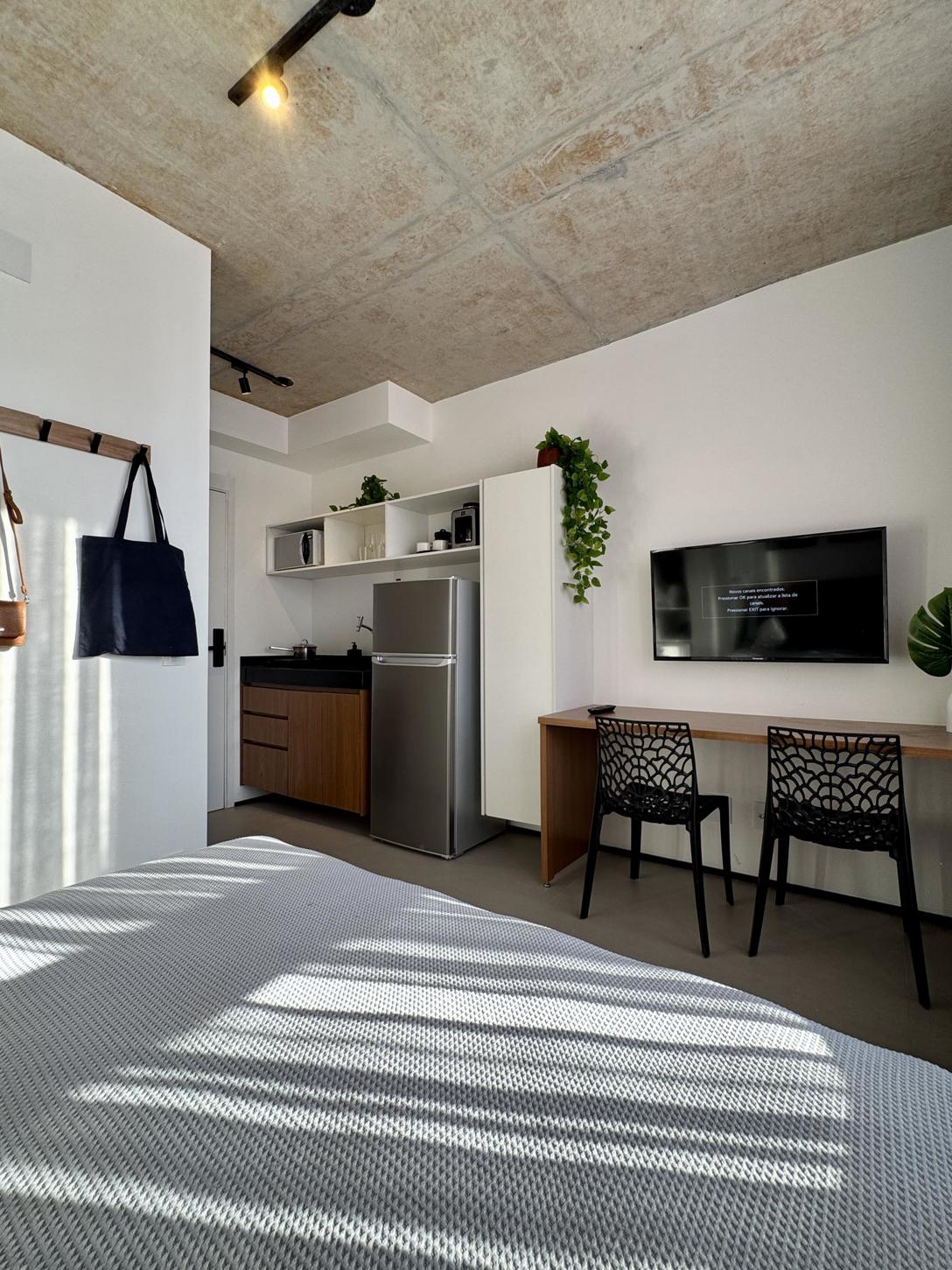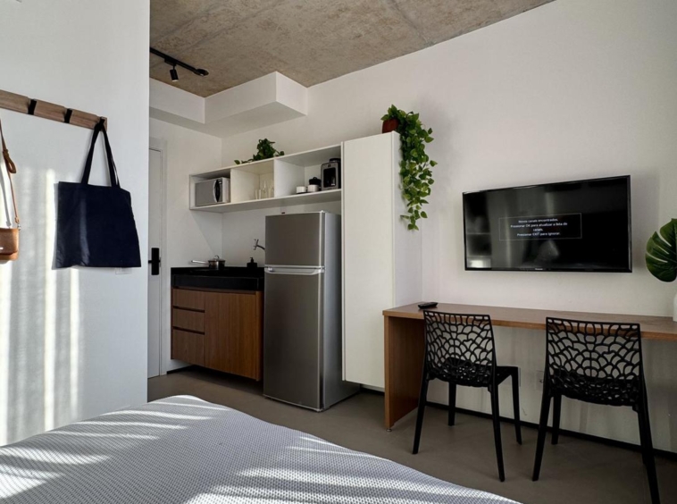 Studio já plugado no Airbnb e alugando. Perfeito para quem não é de São Paulo e não quer reformar. 100% equipado e com gestora de locação profissional (sem fidelidade).